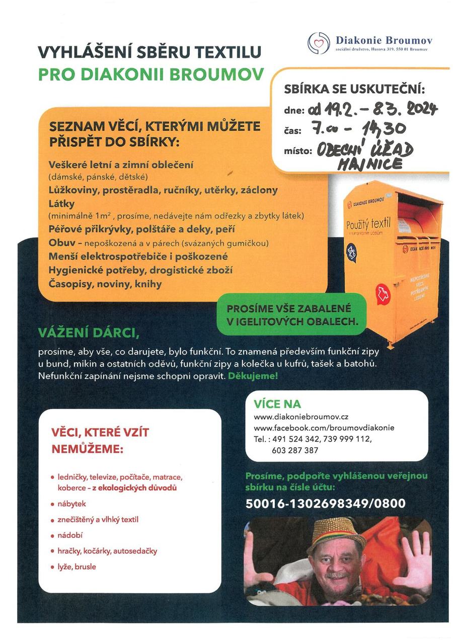 Diakonie sbírka jaro 2024