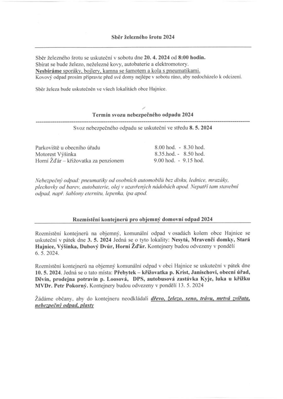 Obsazenost sportovišť a areálů + přehled akcí v Hajnici