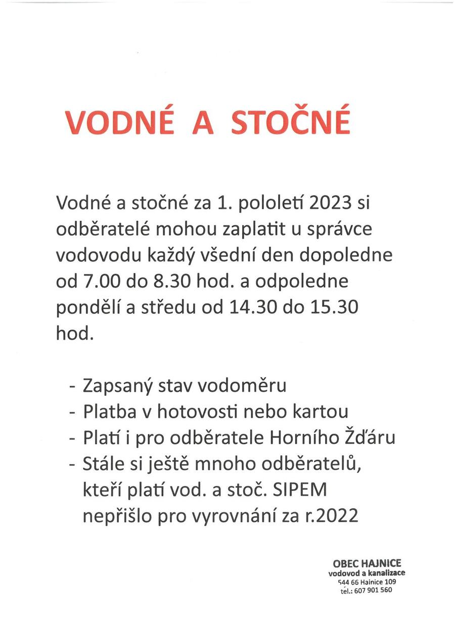 Placení vodného a stočného