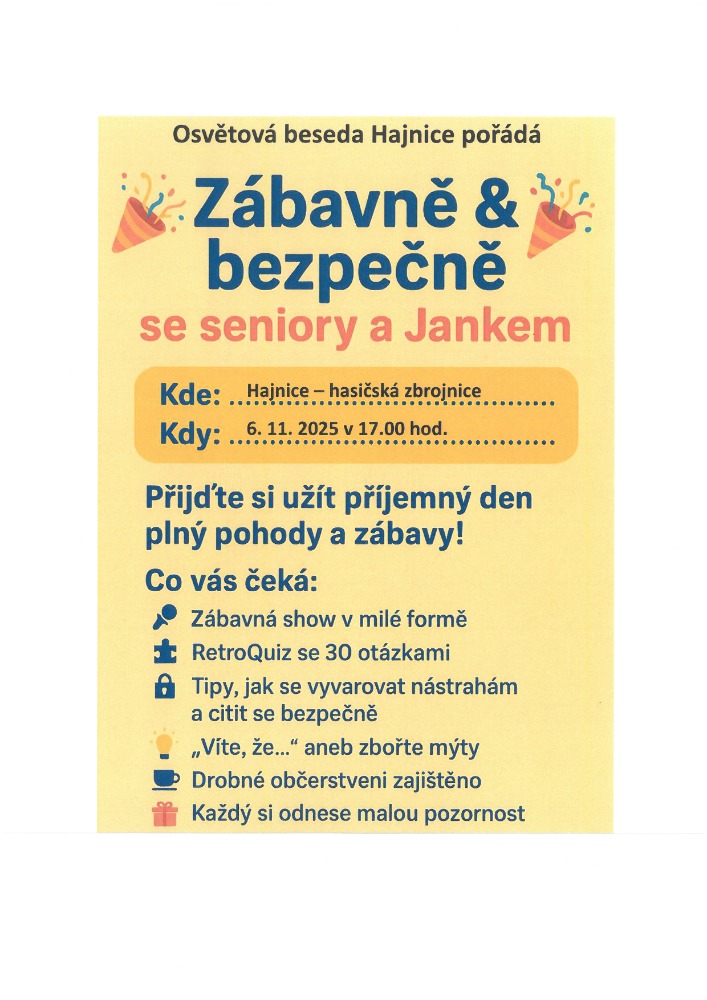 Vážení obyvatelé Hajnice, obdržela jsem informaci o kterou se s vámi chci podělit: