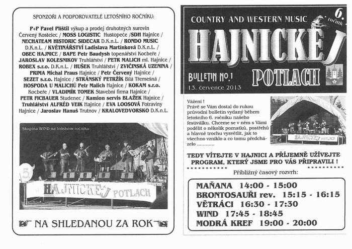 Hajnickej potlach 2013 - plakát a bulletin No. 1